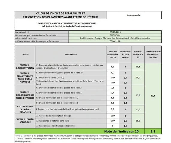 Indice de réparabilité