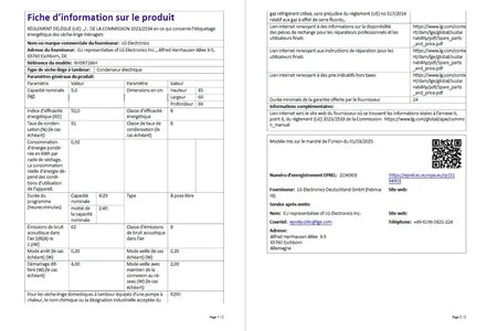 Sèche-linge pompe à chaleur Lg RH9X71WH Blanc