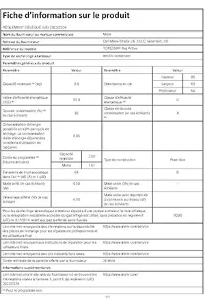 Sèche-linge pompe à chaleur Miele TCA 520 WP