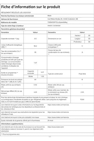 Sèche-linge pompe à chaleur Miele TSD 643 WP 9 Kg